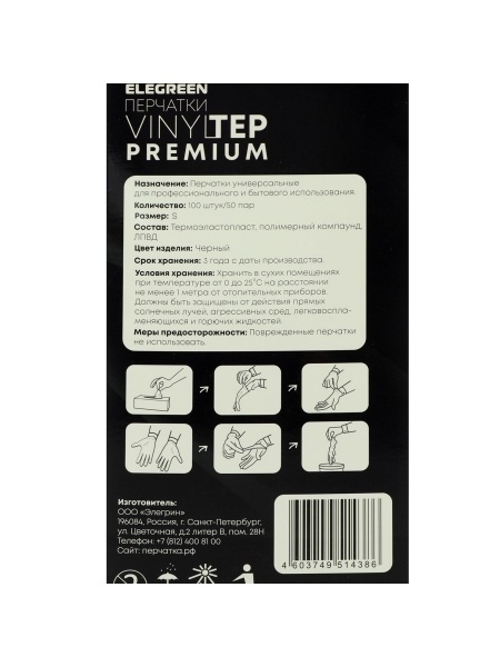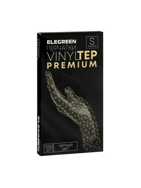Перчатки Elegreen VINYLTEP PREMIUM, черные, S, 50 пар в уп.