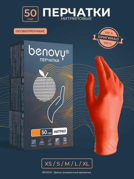 Перчатки одноразовые Benovy перчатки нитриловые в коробке XS S M L XL размер.