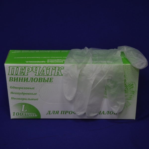 Перчатки одноразовые виниловые неопудренные прозрачные 100 шт - 50 пар ( не нитриловые, не латексные, не резиновые, не полиэтиленовые, не тпе ).