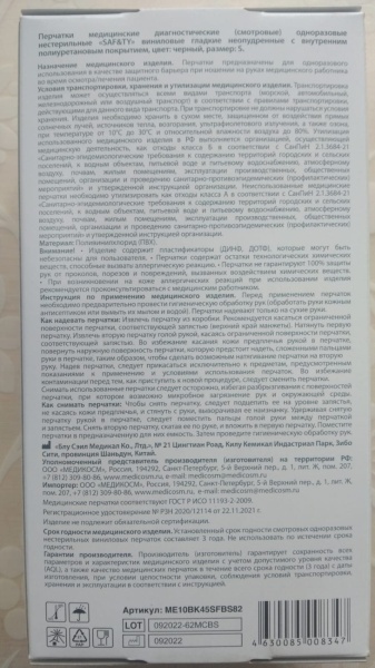 Перчатки виниловые SAF&TY, черные, L, 50 пар в уп.